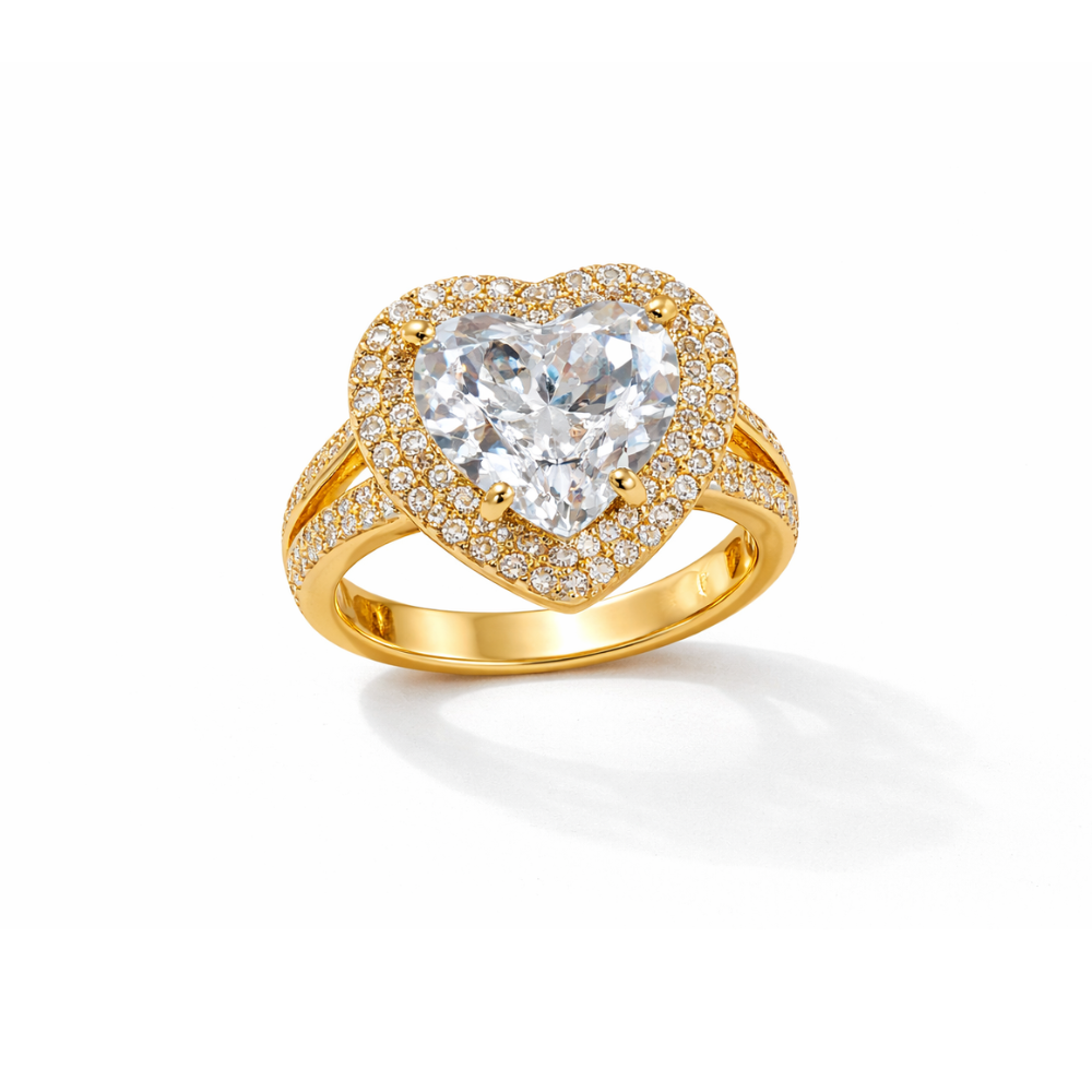 Anel Solitário Coração Aro 20 Cravejado Banhado a Ouro com Garantia