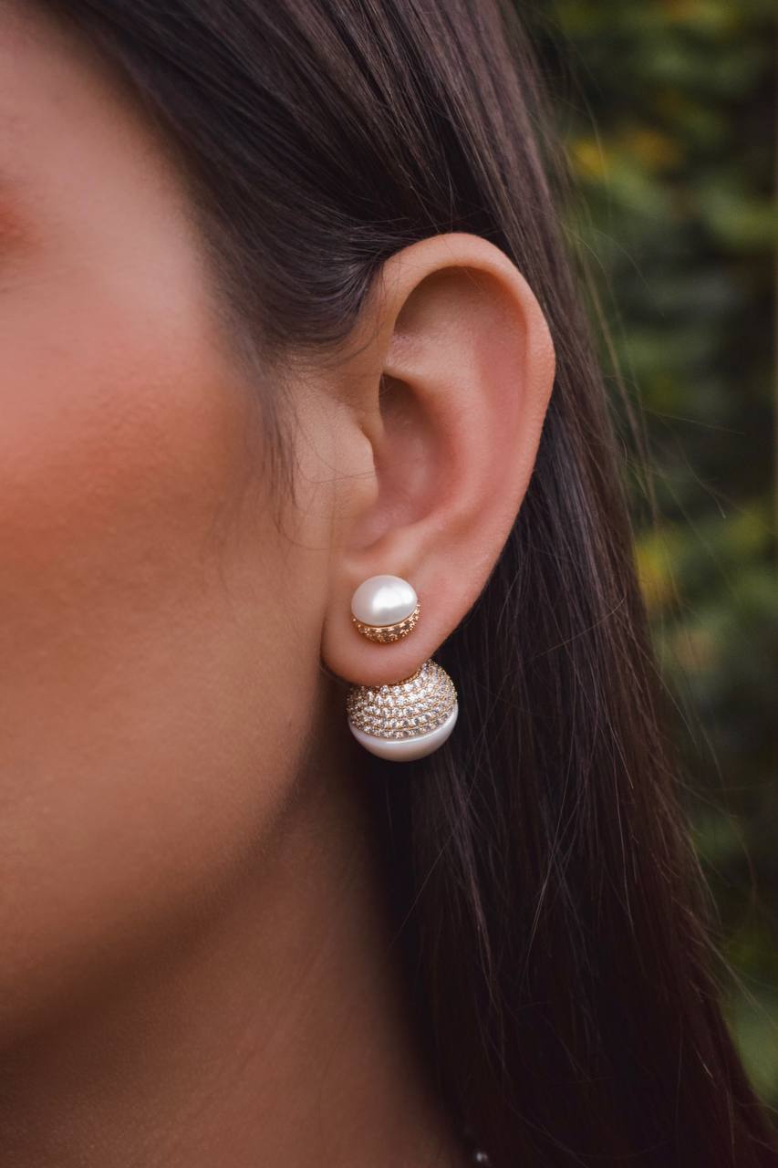 Giá Joias Brinco Bola Ouro Cravejado com Pérola Garantia Semi joia
