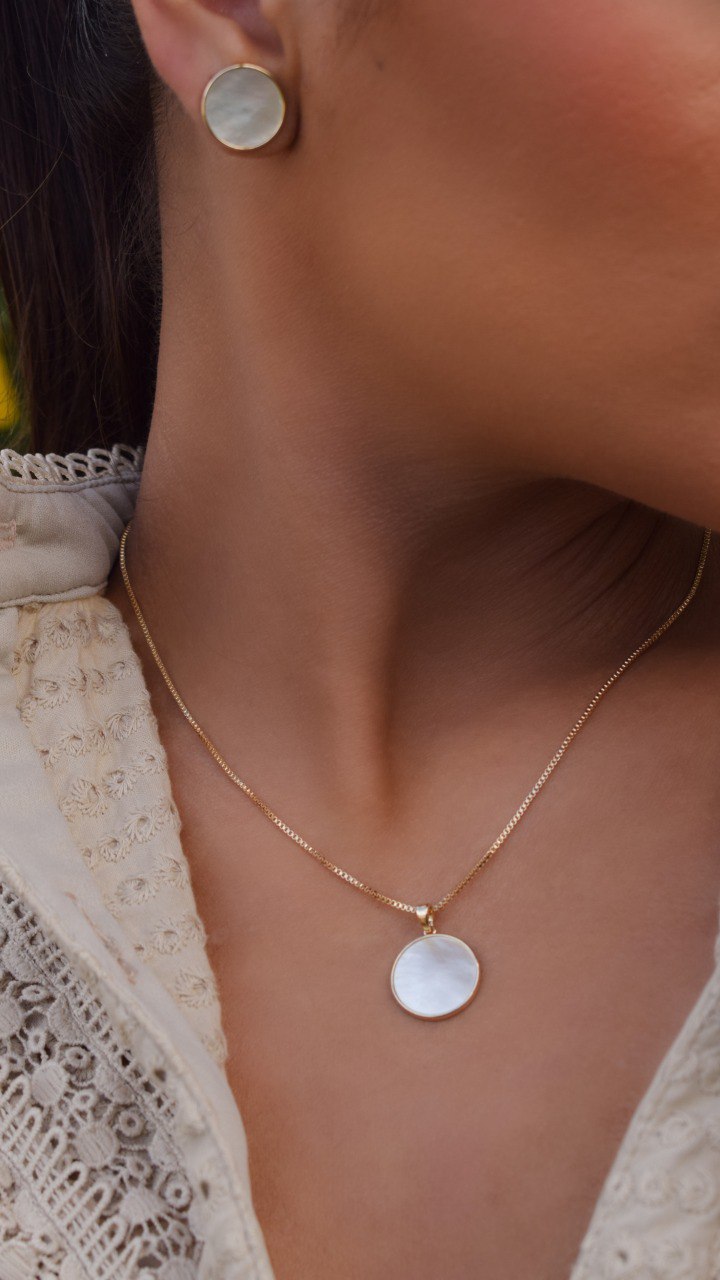 A madrepérola é conhecida por transmitir leveza, feminilidade e proteção, além de seu brilho iridescente único, que destaca qualquer produção com elegância natural. Um conjunto versátil, ideal para usar no dia a dia ou em ocasiões especiais, trazendo um toque romântico e sofisticado ao look.