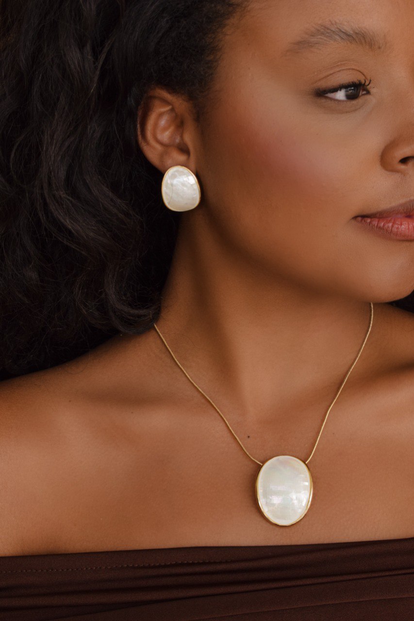 Giá Joias Conjunto Colar e Brincos Madrepérola Verdadeira Banhado no Ouro 18k com Garantia