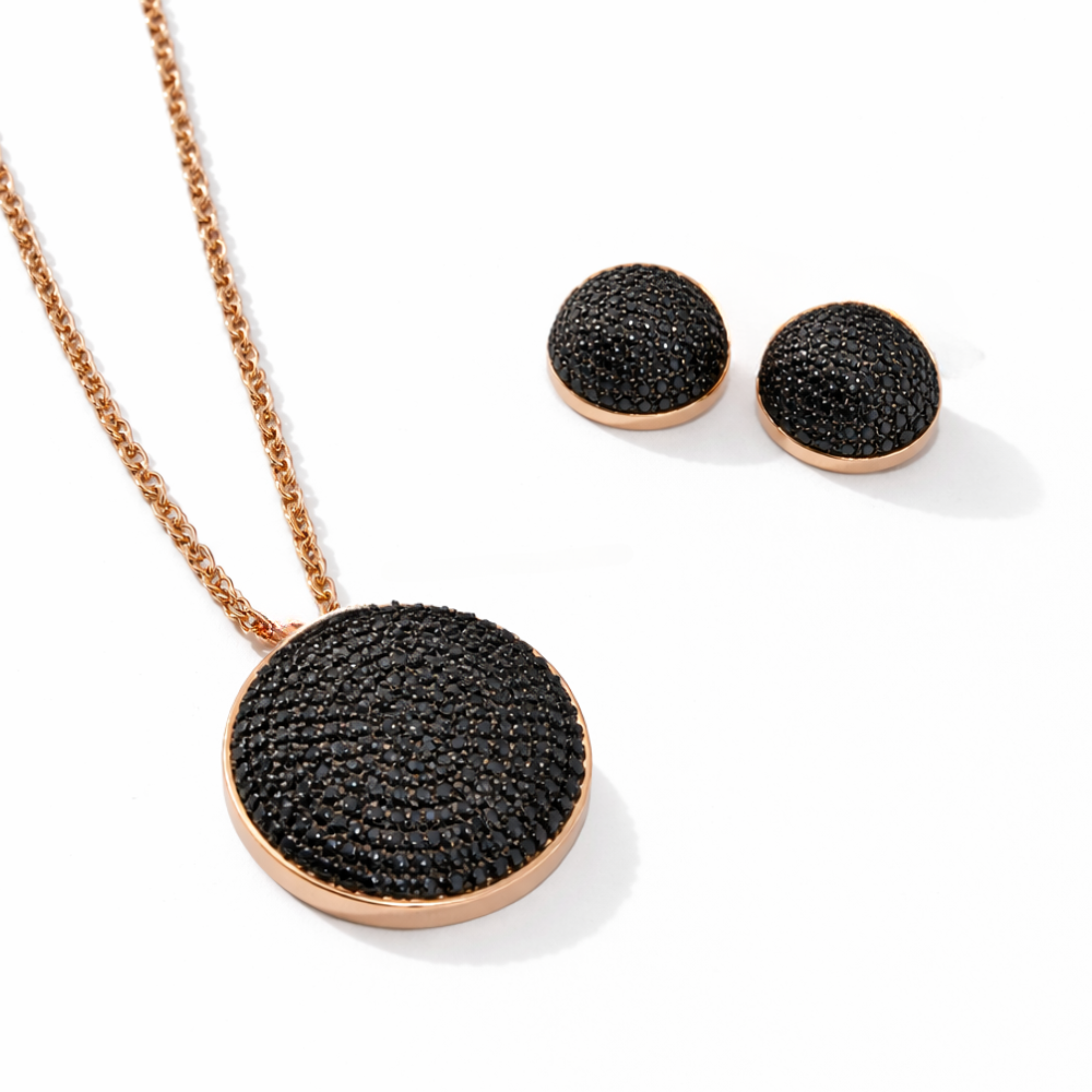 Colar com Pingente Cravejado Preto – Banho a Ouro 18k com Garantia